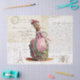 Linda efeméride colidida do século XVIII Senhora de um vestido cor-de-rosa contra um fundo de letra francesa, a Torre Eiffel, e uma abelha (símbolo da França).