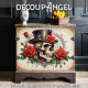 Este elegante design de papel de tecido apresenta um crânio sofisticado, adornada com um chapéu clássico e rosas vermelhas vibrantes, todas colocadas sobre um fundo semelhante a pergaminho. Perfeito por adicionar um toque de charme gótico aos seus artesanatos de Halloween, este design capta uma sutil mistura de horror e beleza. Ideal para projetos de desvinculação que precisam de uma dica refinada de desgraça, essa peça é perfeita para amantes do crânio que apreciam uma mistura de elegância e atração alhada