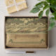 Design de colheita de cor rara e pormenorizada, com filigrana rococó de ouro e medalhão floral em fundo verde e dourado.