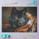 A dramatic black wolf decoupage for furniture wrapped in an ember-rust and turquoise lodge blanket. The onyx coat and warm fur trim add depth and contrast, giving dressers, hutches, and armoire panels a modern-lodge edge. Colors play beautifully with deep teal, saddle brown, and warm greige finishes. Printed for clean burnishing and smooth sealing, it delivers a polished focal point that turns rustic flips into high-impact showpieces. black wolf decoupage for furniture, ember turquoise wolf art, rustic cabin dresser tissue, lodge blanket wolf design, canyon ember palette decor, cabinet drawer liner armoire panel, ranch farmhouse makeover tissue, luxury decoupage tissue, hautegraphique decoupage designs