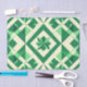 Captivate with this mesmerizing emerald green geometric pattern featuring intricate interlocking stars and diamonds in a kaleidoscopic layout. Rich forest greens blend seamlessly with mint and pale cream tones, creating layered depth and a subtle 3D illusion through precise angular facets.