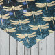 Papel De Seda Encantando libélulas Douradas no Damasco Azul Teal