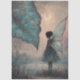 A dreamy glowing woodland scene with this enchanted moonlit leaf fairy watercolor illustration. Featuring a delicate fantasy fairy beneath a soft full moon, with luminous wings and shimmering leaf details, this artwork blends dreamy twilight colour and storybook magic. Painted in gentle tones of teal, misty blue, soft cream, and warm glow highlights, it creates a calm, whimsical atmosphere that fairy and fantasy art lovers will instantly connect with.