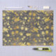 design de padrão dourado de flores passionais em tons dourados sobre fundo castanho escuro com escrita manuscrita em francês para embrulho de presente angustiado ou artesanato de dissociação