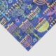 Este papel de tecidos de férias apresenta um padrão chic de ouro, menorah verde e roxo e estrela dourada de David em um fundo azul. Projetado pelo renomado artista Tim Coffey.