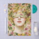 Ethereal floral fantasy artwork featuring a serene female portrait emerging softly from a lush garden of blossoms. The woman’s eyes are gently concealed beneath a blindfold, creating a sense of mystery and quiet introspection, while her softly defined lips and pale skin remain the focal point. Layers of painterly flowers, leaves, and subtle mosaic like textures blend seamlessly into the figure, giving the piece a dreamlike, symbolic quality rather than a literal portrait. The overall effect is romantic, feminine, and timeless, making this design especially suited to expressive decoupage and mixed media projects. Artwork similar to a softly layered oil painting……COLOR COMBINATIONS: Blush pink, cream, sage green, yellow, olive, rose…..PERFECT FOR: Decoupage projects, furniture upcycling, cabinet doors, box lids, framed decorative panels, mixed media canvases, romantic home décor, floral themed craft projects, keepsake boxes….🖤 NOTE 1. The 18 lb tissue is a great choice if you like a little extra strength—it's easier to handle, resists tearing and allows for gentle repositioning. It’s also more opaque, making it perfect for darker surfaces. The 10 lb tissue is wonderfully lightweight and flexible giving you that smooth, blended finish. It’s ideal for layering on furniture or smaller projects so treat it gently and it will reward you with stunning results!.….🖤 NOTE 2. All items with this particular design share my unique identifying “Letter/s Number/s” label in the title for easy searching. …..🖤
