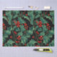 Padrão clássico contemporâneo de Natal com ramos de plantas sagradas e bagas vermelhas