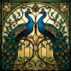 Este design de IA editado digitalmente apresenta um par deslumbrante de pavões espelhados emoldurados em um motivo de falso vidro manchado. Os vibrantes tons azuis, verdes e joias trazem um toque de elegância e arte para seus projetos—perfeito para decoupagem, papel de embrulho ou artesanato de decoração de casa criativa.