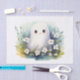 Ilustração de fantasma charmoso cercado por flores de aquarela em um design de lenço de papel inteiro. Uma opção doce e caprichosa para embrulhar no Halloween, projetos de artesanato DIY, junk journaling ou decoupagem. O estilo de imagem única grande o torna especialmente atraente.