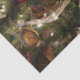 Fecho de uma árvore de Natal totalmente decorada com bolhas e ornamento de trompete, fita e luzes.