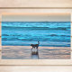 Papel De Seda Feliz Cão e Reflexão na Praia no Sunset