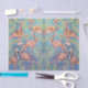 pintura rosada e lúcida flamingo com folhas amarelas e azuis sobre fundo roxo