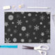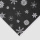 Este lenço de papel festivo caracteriza flocos de neve de queda em um fundo preto.