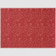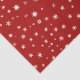 Papel de tecido de Natal com flocos de neve brancos em fundo vermelho.