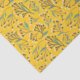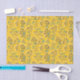 Seamless floral pattern with delicate branches, blue-green leaves, and pink buds on a vibrant yellow background, creating a cheerful, lively tone.