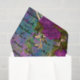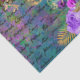 Uma colagem de flores roxas, um pavão e um guião sobre um fundo teal. Há apenas um toque de ouro e brilho. Perfeito para embrulho de presente elegante ou para projetos de desvinculação e artesanato de papel.