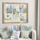 "Flores Azuis Girassóis Dragões Arrastões Franceses Colagem de Jardins Artesanando Papel Tecido de Decodificação, peso pesado para desacoplamento de móveis, arte de parede ou embrulho de presente." Esta é uma série de pinturas paintadas que foram criadas em pastéis de petróleo. Azul elegante Flores delfinium e girassóis numa colagem com borboletas azuis, libélulas e um pássaro numa plantação de jardim de campo. Toda a trabalho de arte foi pintada por uma artista e designer internacionalmente licenciada, Audrey Jeanne Roberts, copyright.