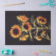 PAPEL DE SEDA FLORES COM FOLHAS VERDES EM PRETO