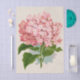 Papel de tecido delicioso, perfeito para embrulho de presentes ou para desvinculação, apresenta flores poeirentas, cor-de-rosa, de hortensia, com folhagem verde contra fundo branco esbranquiçado de creme de marfim.