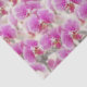 As orquídeas bonitas do fúcsia, as cor-de-rosa e as brancas decoram este lenço de papel. Faz uma maneira elegante de envolver presentes para casamentos, dia das mães, e outras ocasiões especiais.