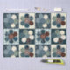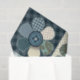 O padrão de país bonito apresenta um gráfico repetido de quatro painéis de flores de botões de retalhamento em tons de azul com cores complementares.