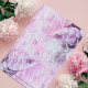 Design de papel de tecido bonito e único, apresentando uma colagem de flores de pedras em tons rosa pastel e roxos com uma cobertura de texto manuscrita.