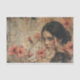 um aglomerado de flores em uma página com escrevendo e uma jovem adorável está presa à queda das flores.