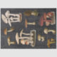 Fundo negro dramático para uma biblioteca escura ou decoração de quarto de Cottagecore. Cogumelos de ilustração botânica colorido do chão da floresta foram pintados em aquarelas. Colocado sobre um gráfico de jardins de caligrafia manual rústica com letras de escrita manual em camadas e bolachas pálidas pintadas em fundo de tempo. Esta colagem quente e acolhedora foi desenhada graficamente pela artista e designer internacionalmente licenciada Audrey Jeanne Roberts, copyright.