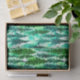 Papel tecidular em padrão aquoso de pinheiros em uma floresta montanhosa, em tons de verde-pinho médio a escuro sobre fundo macio e aquoso