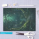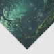 Um caminho brilhante cheio de insetos de raios leva a uma floresta verde e lacrimogênea.
