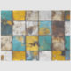 Este fundo de dissociação, em formato de azulejo angustiado, apresenta uma grelha de azulejos quadrados em tons de turquesa, amarelo, branco e castanho, cada um com uma textura meteorológica e rústica. As superfícies rachadas, estilhaçadas e vestidas dão ao design a uma vintagem, apelação antiga, fazer ideal para projetos criativos, decor shabby-chic e artesanatos de mídia mista. impressão de azulejo rústico vintage, papel artesanato angustiado, design de fundo antigo texturizado, padrão decorativo shabby-chic, textura de azulejo artístico intado, arte midimensional decoração artística ao estilo da fazenda, único azulejo inspirado no, ilustração de azulejo enfeite, estética decorativa do mundo antigo