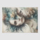 Um design de papel de tecido evocativo para a dissociação, representando uma figura feminina misteriosa emergindo de uma fusão da natureza e dos elementos. Sua face é perfeitamente misturada com uma cascata de texturas etéreas — fragmentos de terra rachada, folhas delicadas e nuvens de aquarela em tons, sépias e cinzas. Seu olhar piercing exalta serenidade e força, como se personificasse o equilíbrio entre decadência e renovação. As intrincadas transições entre a forma humana e os padrões naturais abstrato criam um sentido de transformação, perfeito para projetos de arte que exploram a beleza, a fragilidade e a conexão entre a humanidade e a natureza.