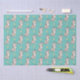 Arte De Aquarela De Gato Atingindo Borboleta Amarela em Fundo De Teal Claro. Clique em "Editar usando a ferramenta Design" para alterar as cores.
