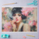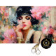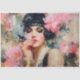 Canalize a elegância sensual dos Anos Vinte com este papel de decoupage apresentando uma flapper glamurosa adornada com pérolas, detalhes dourados e um toucado floral ousado. Com um porta-cigarros na mão e um bruma sonhadora de flores pintadas ao fundo, este design inspirado no vintage é perfeito para decoração de bares sofisticados, eventos da era do jazz, artesanatos de speakeasy e projetos DIY femininos e glamorosos.
