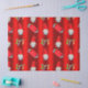 Um adorável e caprichoso padrão de pequenos elfos de Natal (ou gnomos) em chapéus vermelhos, com barbas compridas, cercados por meias de Natal coloridas, listradas e Cartões de natal vermelhos dizendo, "Feliz Natal", tudo num fundo vermelho festivo.