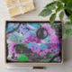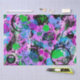 Abstrato em tons vivos de turquesa, rosa, roxo, lavanda, travesseiro, verde, preto e branco.