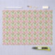 This Christmas tissue paper has a pink bow Christmas swag trellis pattern with leopards wearing wreaths.