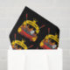 Churrasco sobre carvão inflamável, faixa de rolagem com texto personalizado sobre garfo e espátula. Cor de fundo personalizada.