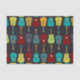 Características deste design moderno um teste padrão de guitarra acústicas coloridas em cores vibrantes da cerceta, do amarelo, do vermelho, do azul e das cinzas. O fundo é um muito escuro - cinzas, quase preto. Estes tecidos são grandes para adicionar a cor a suas bolsas do presente e são perfeitos para um presente do tema da música ou para um músico.
