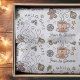 Este papel de lenço Feliz Hallo-days adiciona uma reviravolta divertida para o final das férias com um design que combina o charme assustador do Dia das Bruxas e os detalhes festivos do Natal. Apresentando elementos desenhados à mão como fantasmas, crânios, ornamentos, e um biscoito de pão de gengibre decorado com gelo esquelético, ele traz uma aparência única para presentes, favoritos para festas e embalagens sazonais. Personalize com seu nome um toque especial extra que gravatas no seu tema de feriado.