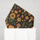 A decorative and cozy fall pattern! This cute design is hand drawn and digitally illustrated, featuring a charming medley of pumpkins, sunflowers, leaves, and mushrooms on a stylish black background. It perfectly captures a charming woodland harvest look with a vintage-inspired, rustic texture.