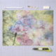 Hídranga floral, cor-de-rosa e azul, com libélula preta, e efêmera com marca postal, com base no estilo de arte floral amarela e cinza. Viva para desacoplamento de móveis.