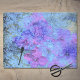 Hídranga floral numa cor púrpura, rosa e azul mais escura, com libélula preta, e uma efêmera com uma base azul-ciana no estilo do nouveau. Viva para desacoplamento de móveis.