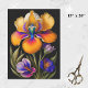 Uma ilustração muito detalhada e imaginativa de uma flor de íris amarela e azul. Criado em detalhes refinados com uma técnica de pincel de ar que lhe dá uma qualidade ética e macia. Uma bela e cativante expressão artística da intrincada beleza das flores da íris.