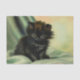 Papel Tecido com um gatinho preto amoroso! O gatinho de olhos verdes senta-se num cobertor com uma flor rosa. Um belo presente para amantes de gatos e entusiastas de arte vitorianos!