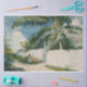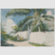 Este design apresenta uma pintura aquarela do artista americano Winslow Homer (1836-1910). Mostra uma bela cena em Naussau, a capital das Bahamas, é um país insular no Caribe. Há um grande coqueiro crescendo atrás de um portão de jardim, e um jovem negro da comunidade local está olhando para a árvore. Há outras palmeiras próximas. O céu é azul claro com algumas nuvens brancas. A arte original foi pintada em 1885.