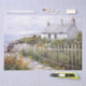 Uma bela ilustração de uma região litorânea pela costa rochosa com um jardim de flores silvestres pela cerca. Desenterrar uma bandeja e enchê-la com presentes ou velas e tesouros do mar para aquecimento doméstico.