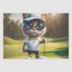 Papel De Seda Jogador De Golfe De Gato Animado Engraçado,