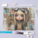 "Dê vida à imaginação com esse tecido de desacoplamento de crianças galhadas e caprichosas, colocado sobre um fundo mosaico vibrante. Envolvido com detalhes brincalhões, engrenagens e cores ricas, este design adiciona um toque de fantasia e criatividade a qualquer artesanato ou fabricação de móveis."