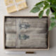 Lanternas de madeira marrom russa do oeste e lanternas pretas. Papel de tecido para decodificação de artesanatos no estilo da fazenda. Imagem copyright Marg Seregelyi Fotografia.